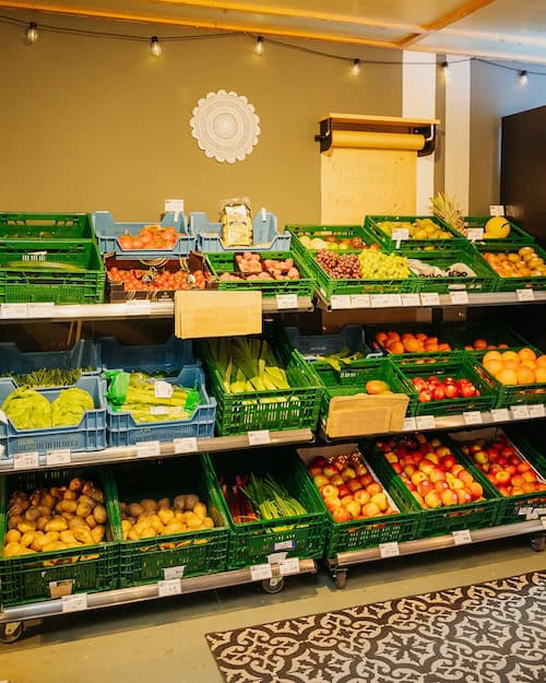 Daar waar mogelijk kiezen we voor lokale telers. De aardbeien komen bijvoorbeeld van Van de Ven uit Oisterwijk, de appels en peren van Lisboa uit ’s-Gravenmoer. Daarnaast hebben we een mooie samenwerking met ‘buurman’ Stefan Schuurmans voor onze landbouwgrond. Regelmatig zijn de bloemkool, asperges, pompoenen of andere groente van Schuurmans in onze schappen te vinden. En, indien mogelijk, komen de sperzieboontjes, pompoenen, snijbonen, en zélfs vijgen uit de moestuin van eigen erf.