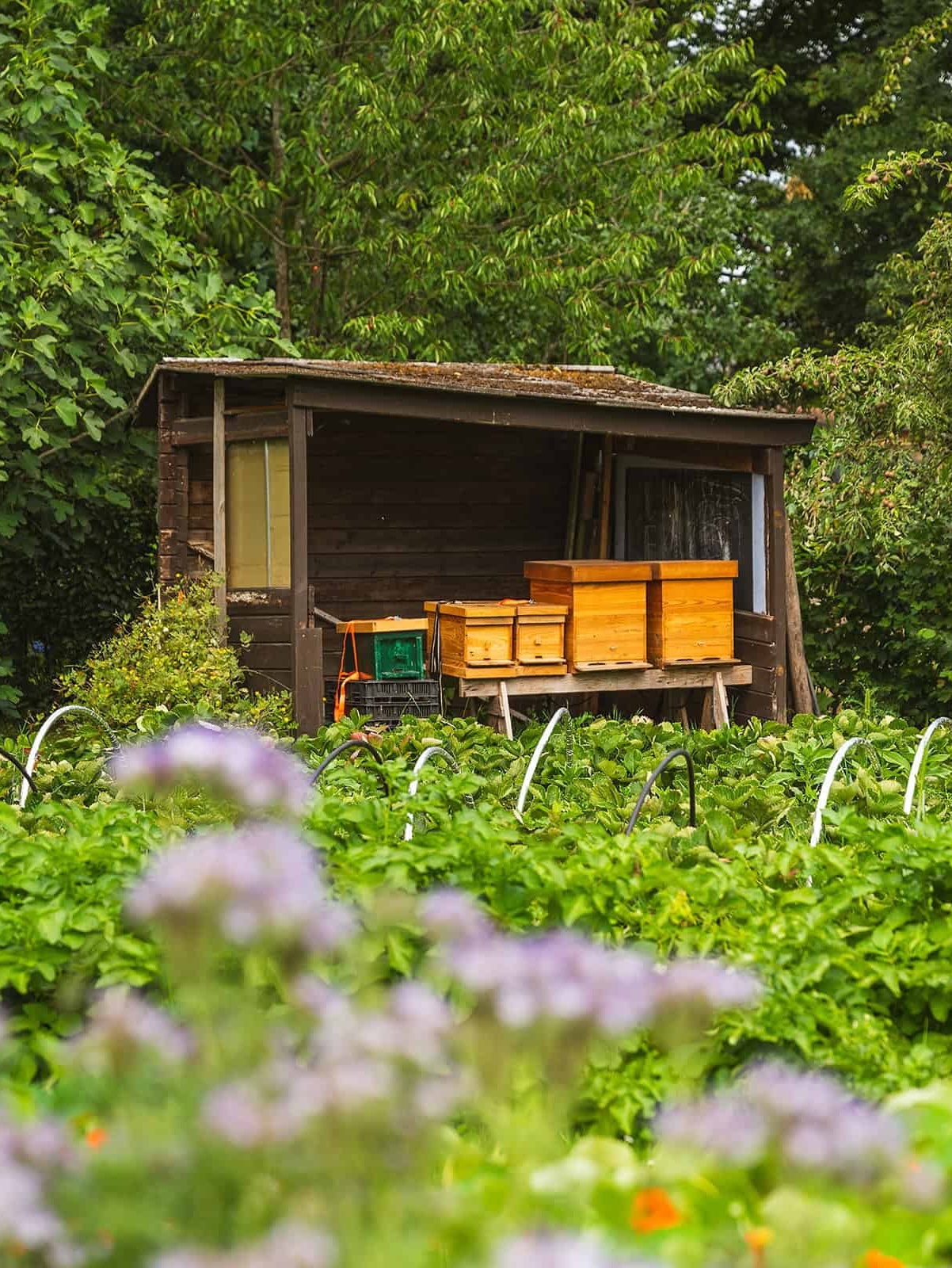 In samenwerking met een lokale imker hebben we bijenkasten op het erf geplaatst. Dit en meer om de bijenvolken te ondersteunen. Deze bijen produceren de honing die we in de boerderijwinkel verkopen.