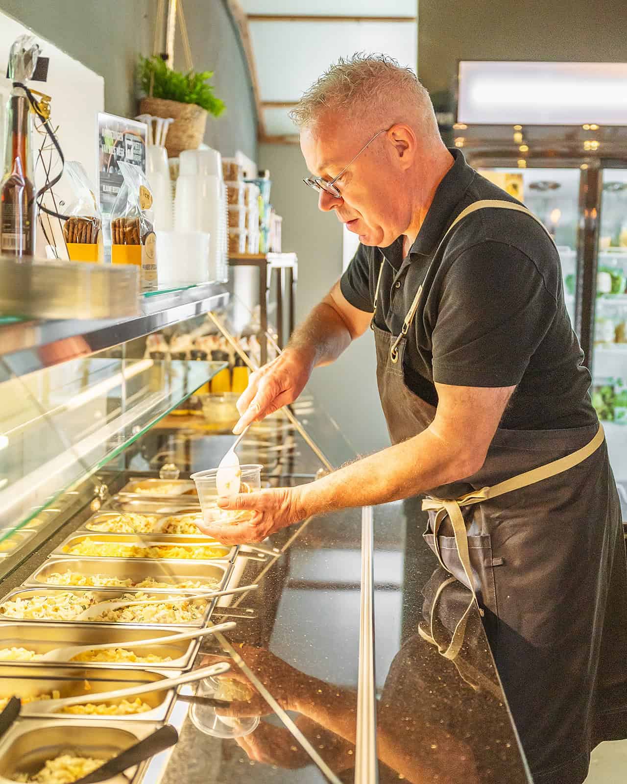In onze eigen keuken maken we elke dag verse rauwkostsalades. Je vindt ze huisgemaakt in onze saladeba. Heerlijk bij lunch, borrel, barbecue of warme maaltijd.